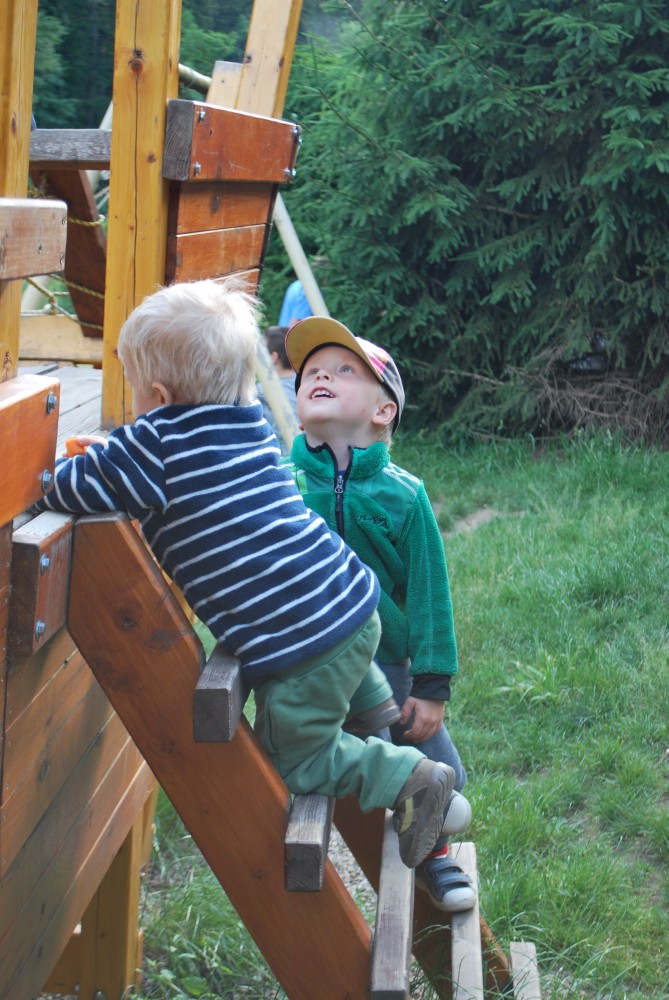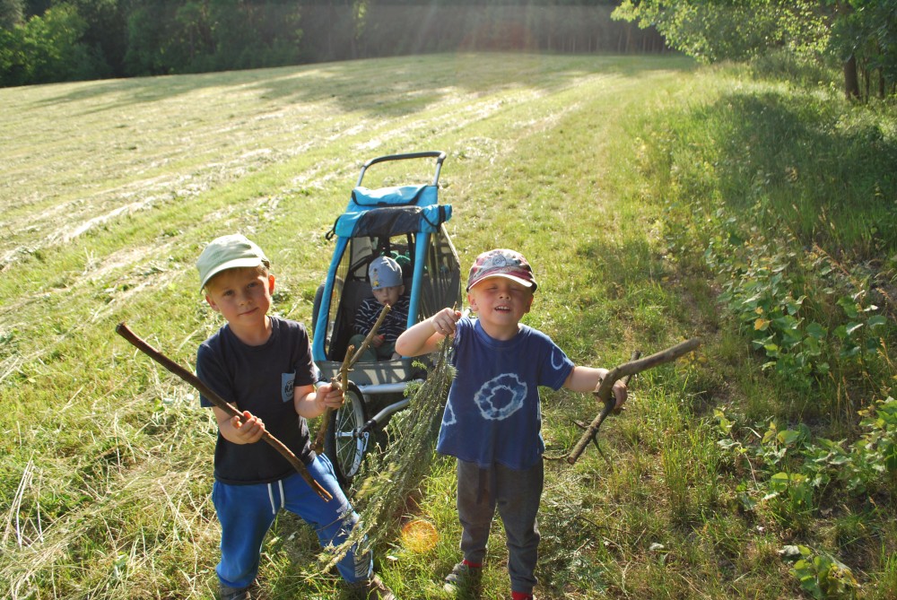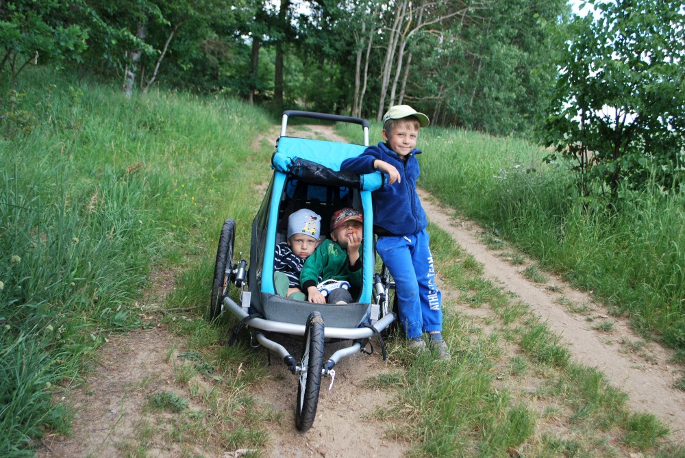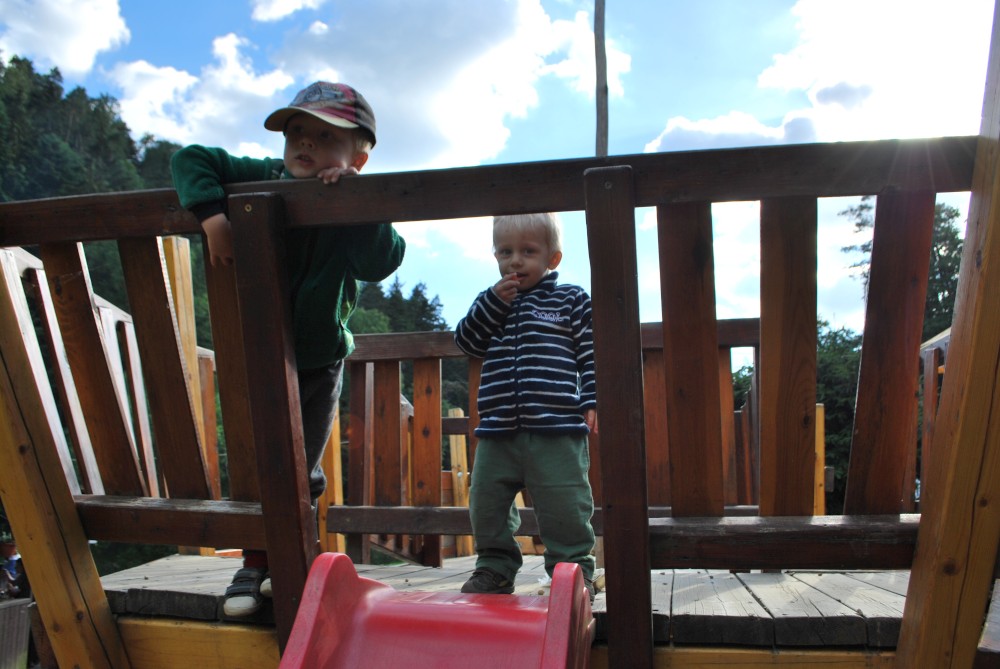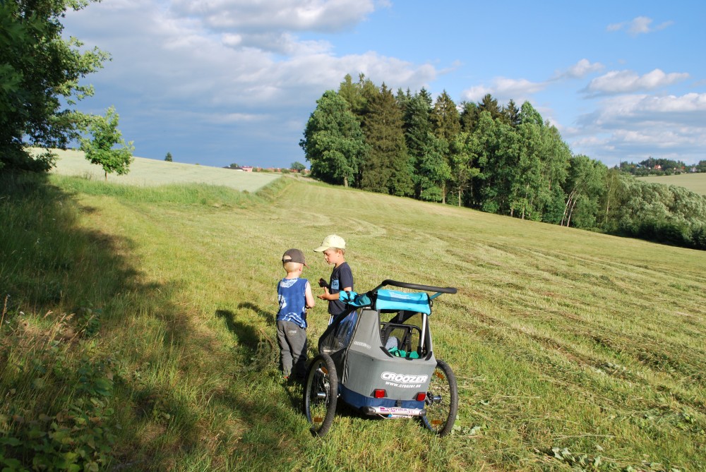Mamka běhá lesy v Lednici, já vyrážím s klukama na výpravu na Harrachovku. Jdeme pěšky Vlčákem a stejnou cestou zpět.