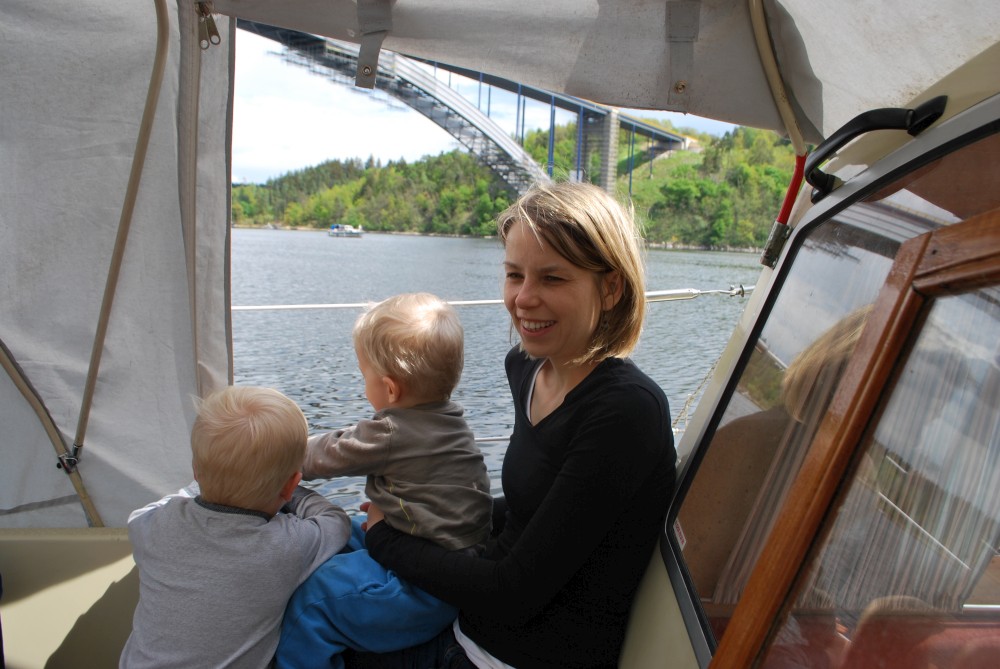 V sobotu odpoledne se přesouváme ze svatby z Prahy na další oslavu do Mariny Orlík. Martin slaví čtyřicetiny a je to velká akce. V sobotu se dost tančí a ponocuje. Děti jdou spát až kolem půlnoci, my až kolem třetí. Přespáváme v chatce. Po snídani si půjčujeme motorové lodě a jedeme na projížďku po Orlické přehradě.