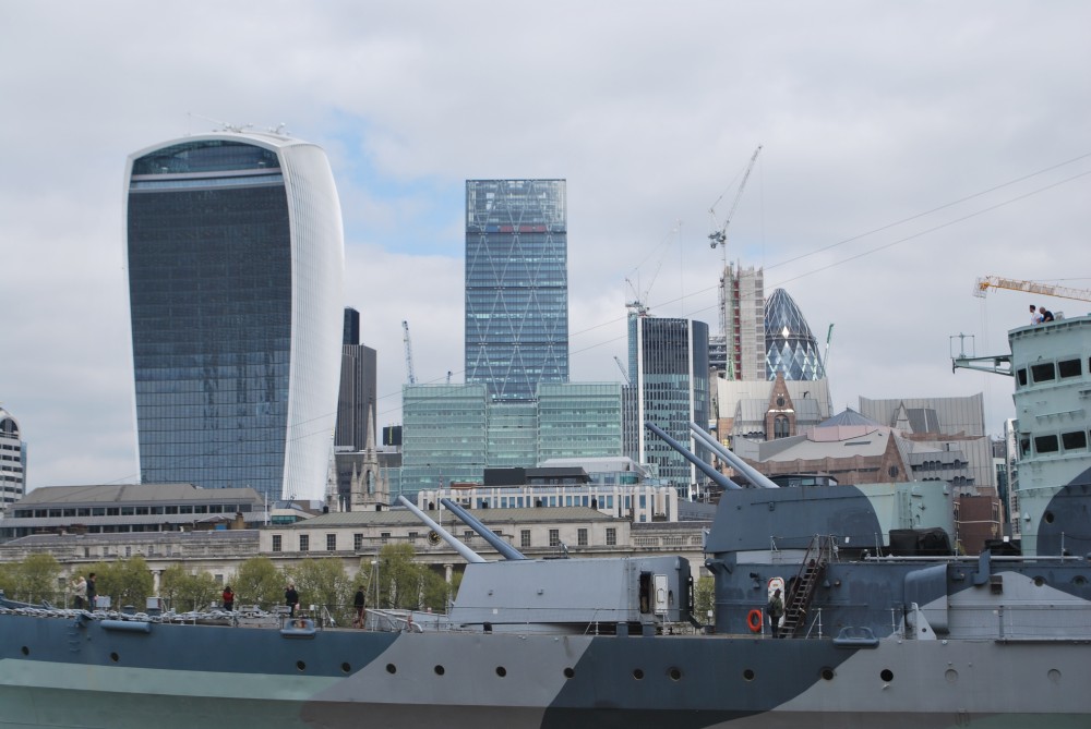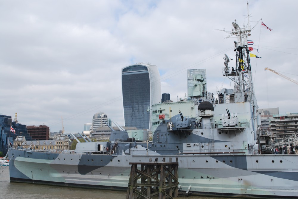 Začínáme u Toweru. Jdeme přes Tower Bridge k City Hall. Pokračujeme po nábřeží, kocháme se pohledy na City a bitevním HMS Belfast. Jdeme kolem Southwark Cathedral až k Shakespera Globe a Tate Modern.