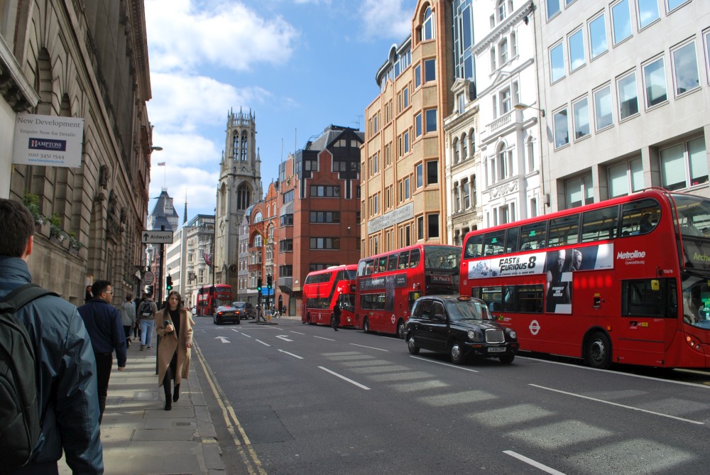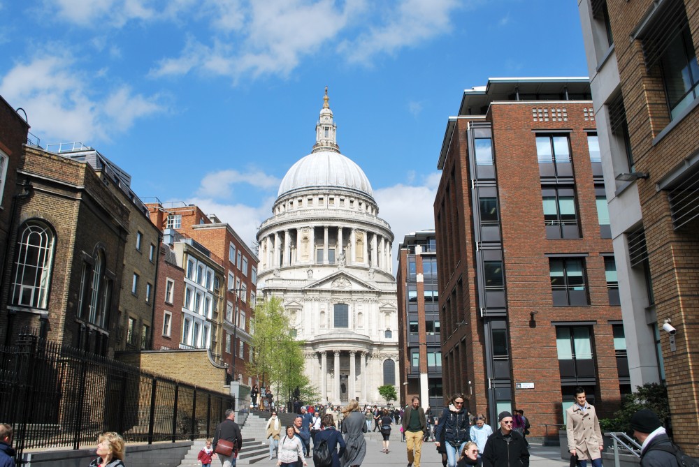 Přes Millenium Bridge se vracíme na druhý břeh Temže k St. Pauls Cathedral. Odtud jdeme po Fleet Street k Temple, Royal Courts of Justice až na Covent Garden. Odtud pokračujeme na Trafalgar Square. Kolem National Galery pokračujeme na sever k Leicester Square a dáváme jídlo v čínské čtvrti u Mr. Wu.