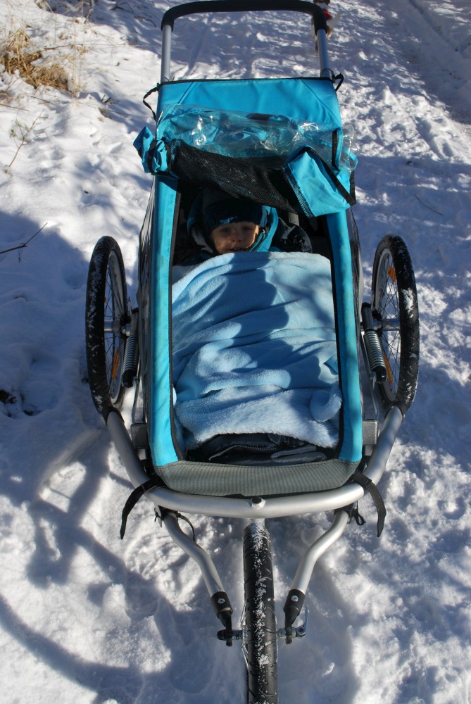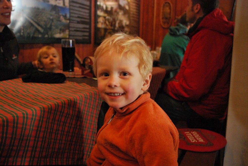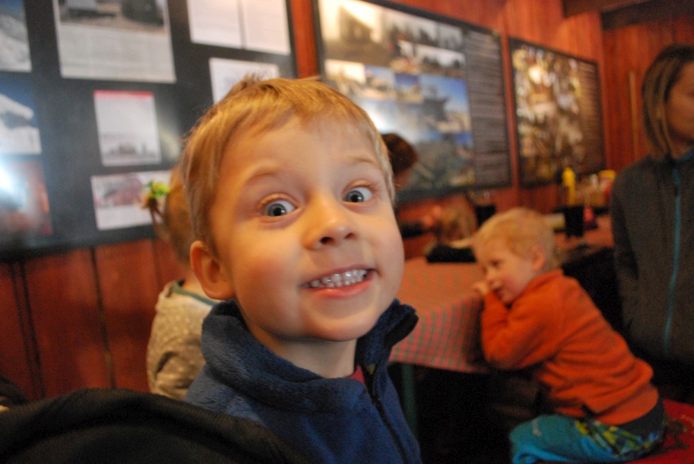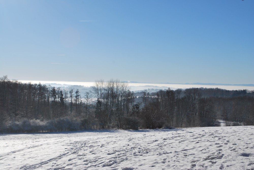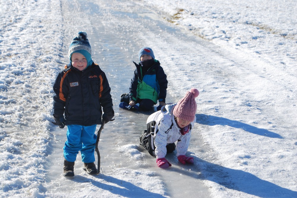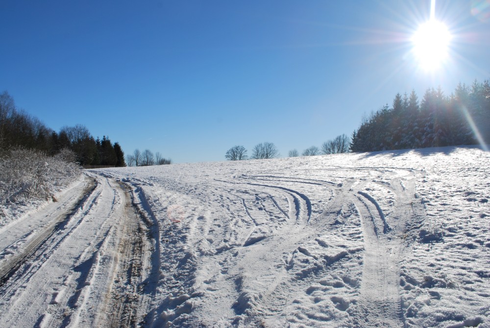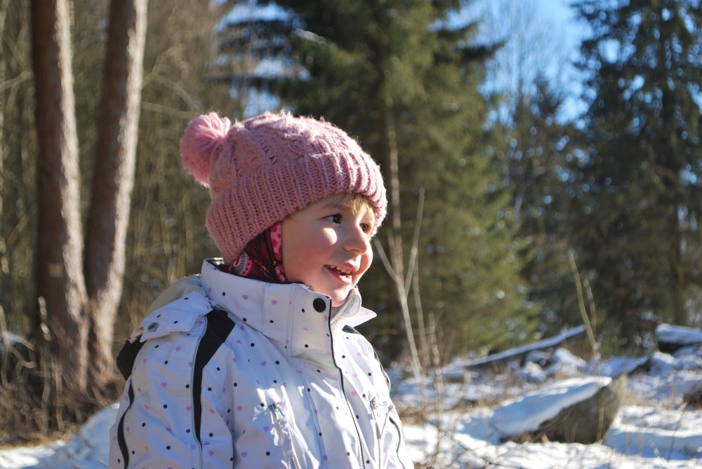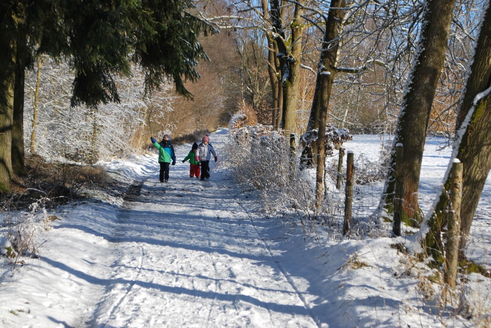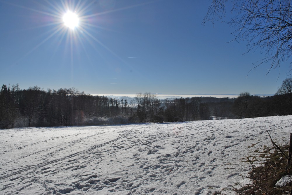 Jdeme na silvestrovskou vycházku s Radkem, Terkou, Toničkou a Fanouškem. Auto necháváme na Ounuzu. Jdeme po žluté na Busíny a pak kolem rybníka a skrz les na Javorovou skálu. V poštovně dáváme polévku a klobásku. Parádní počasí. Svítí sluníčko, stromy jsou ojíněné mrazem.