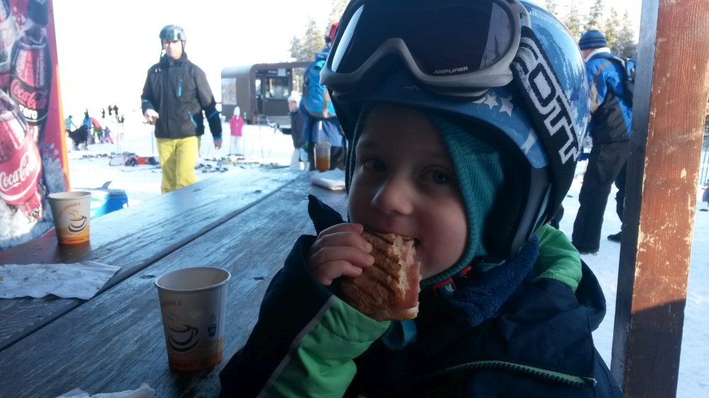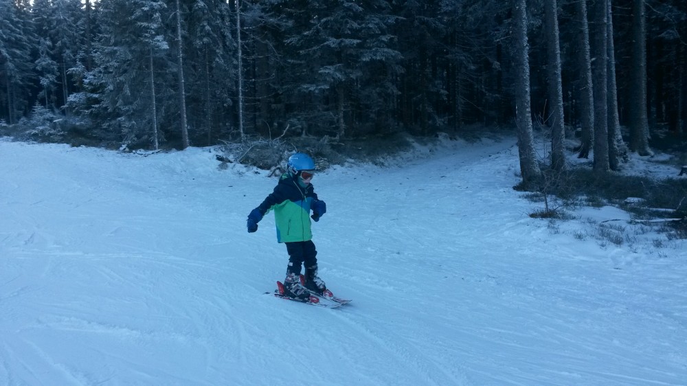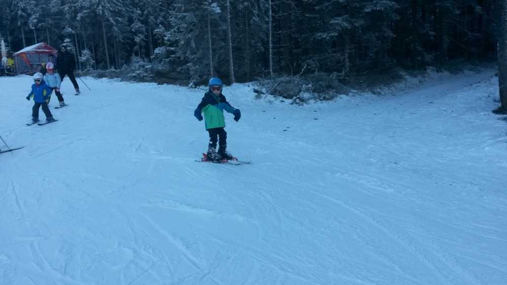 Beru Víťu na lyžování na Zadov zjistit, zda úplně nezapomněl na své lyžařské začátky z loňska. První jízdu to vypadá, že ho musím učit nanovo, ale za chvíli se na loňskou úroveň dostává. Je krásné počasí, svítí sluníčko, trochu mrzne. Bohužel je tu hrozně moc lidí. Čekáme dlouho ve frontě a svah sjedeme za celý den asi sedmkrát. Ale moc jsme si to užili.