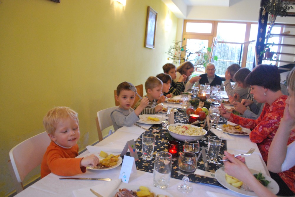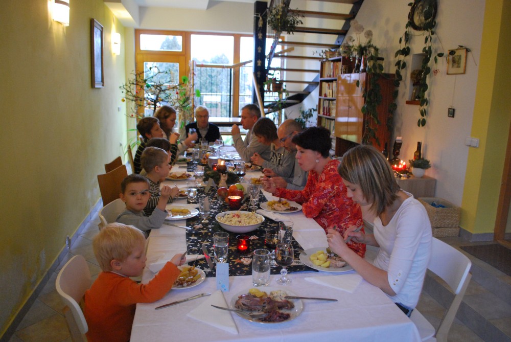 V neděli máme sváteční vánoční oběd. Máme specialitku - francouzského kohouta na víně.