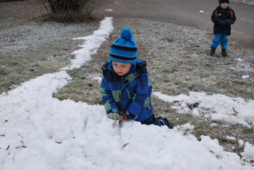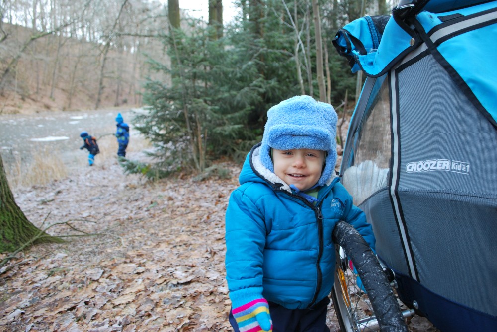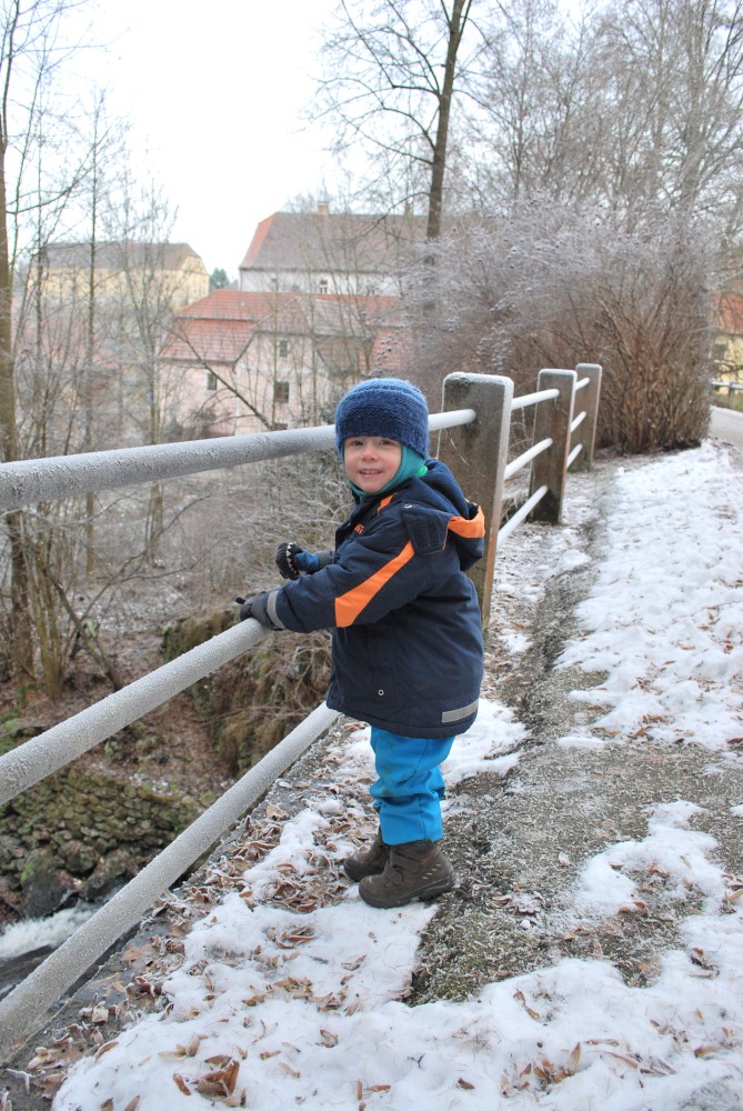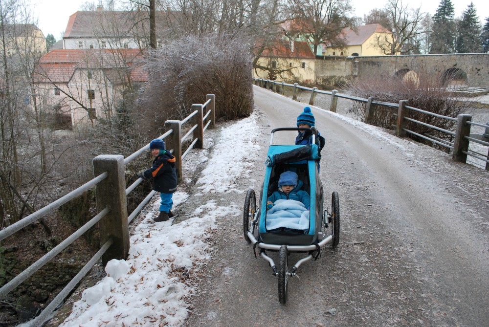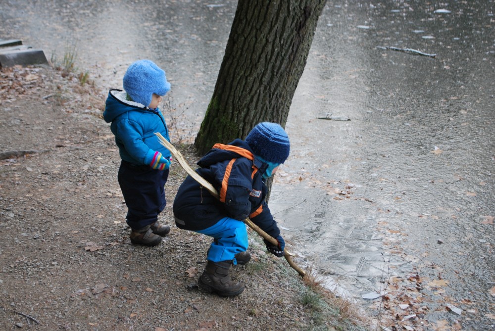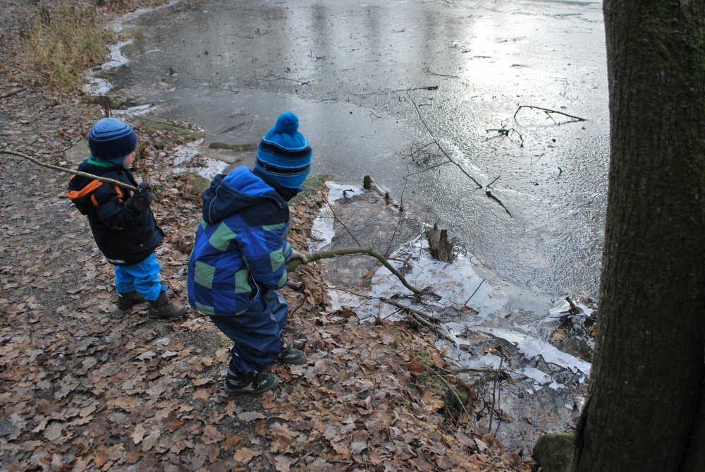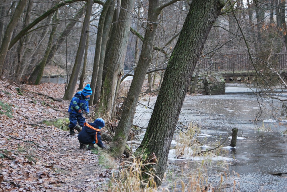 Jana je s holkama v Praze. Kluci ráno vstávají brzy, vyrazíme tedy na dopolední výlet na Červenou Lhotu. Dáváme tam kolečko kolem rybníka. Cesta je v pohodě, malý exponovaný úsek přes skálu zvládáme. Kluci rozbíjí klackama led. Martínek se po jednom zaškobrtnutí trochu namočil, takže spěcháme k autu a jedeme domů. Oběd dáváme už v Táboře na Pintovce a jedeme pro mamku na nádraží.