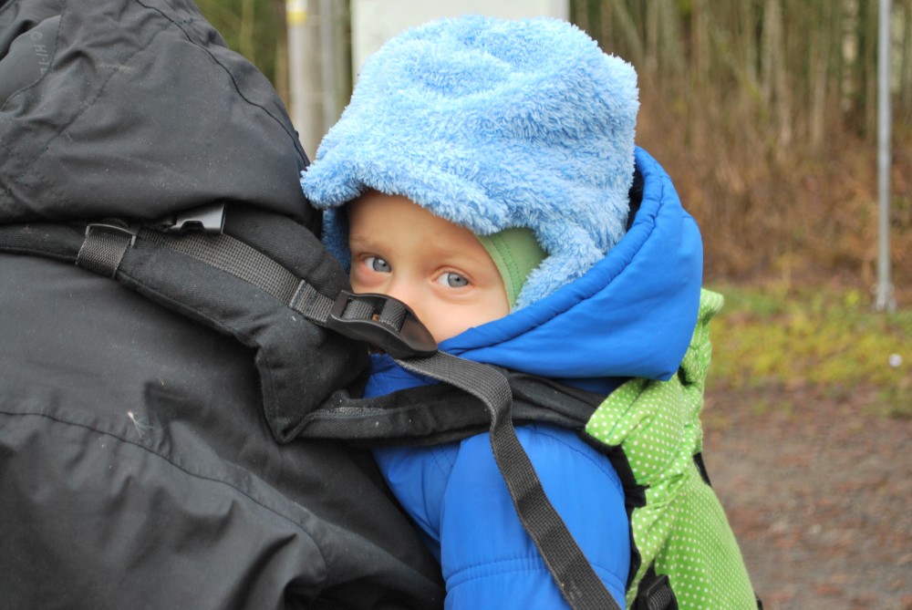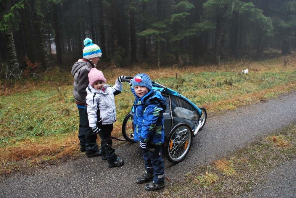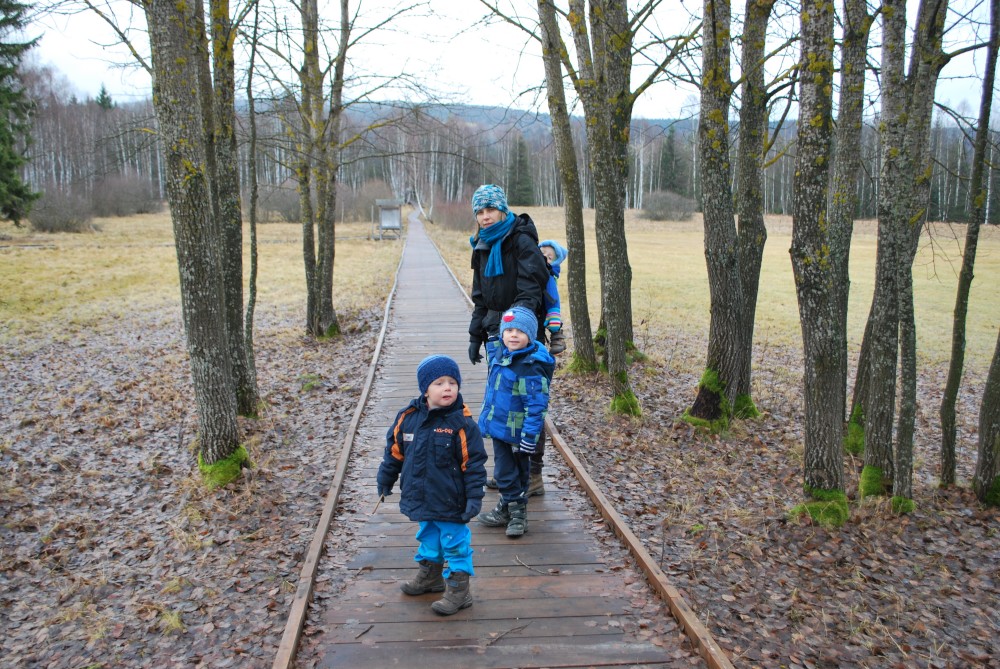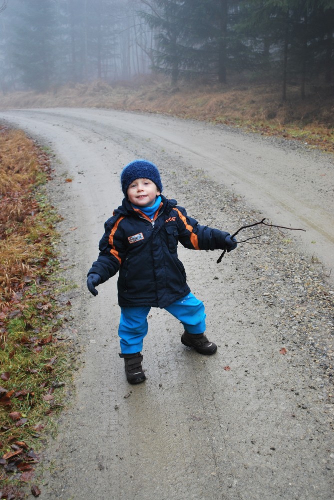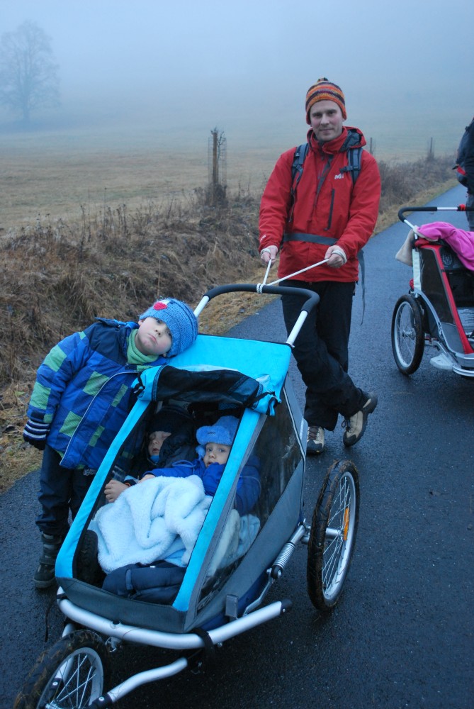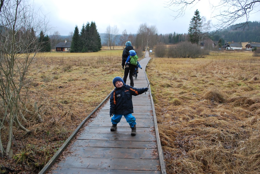 Loučíme se s Kepkovými a jedeme se ještě podívat na Chalupskou slať. Martínek spí v nosítku. Když se vracíme začíná pršet se sněhem a není to moc příjemné. Sedáme tedy do auta a jedeme do Tábora.