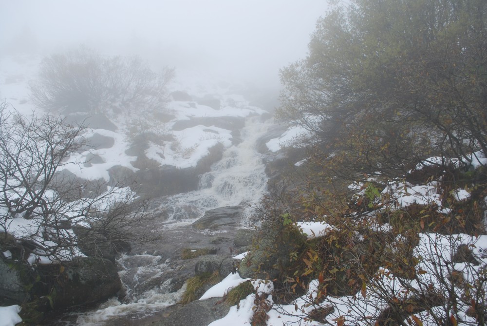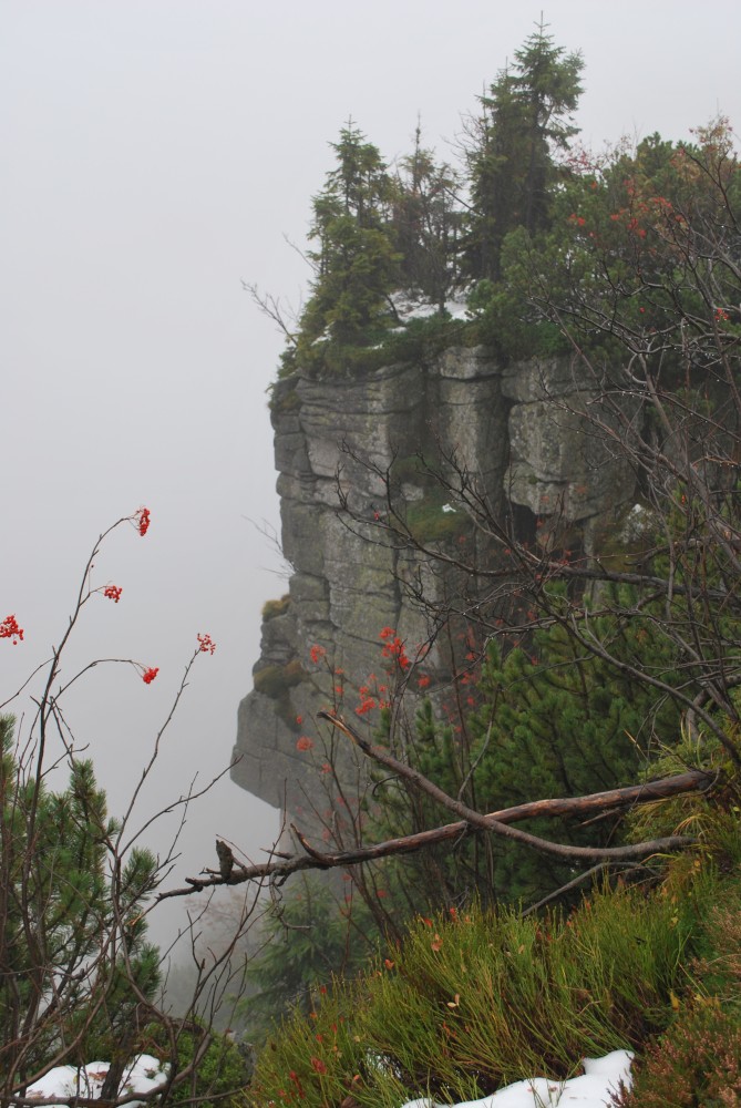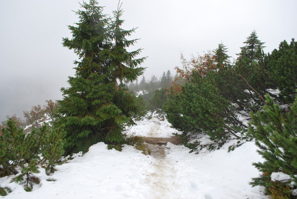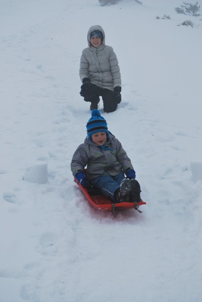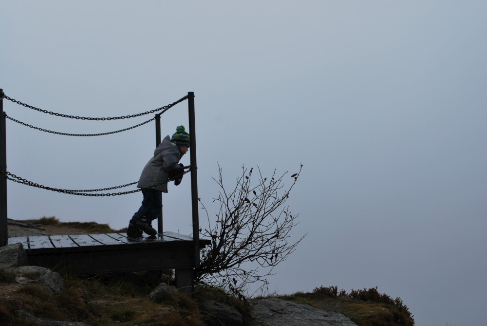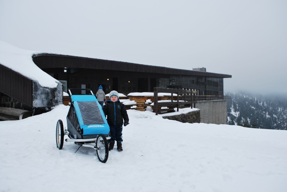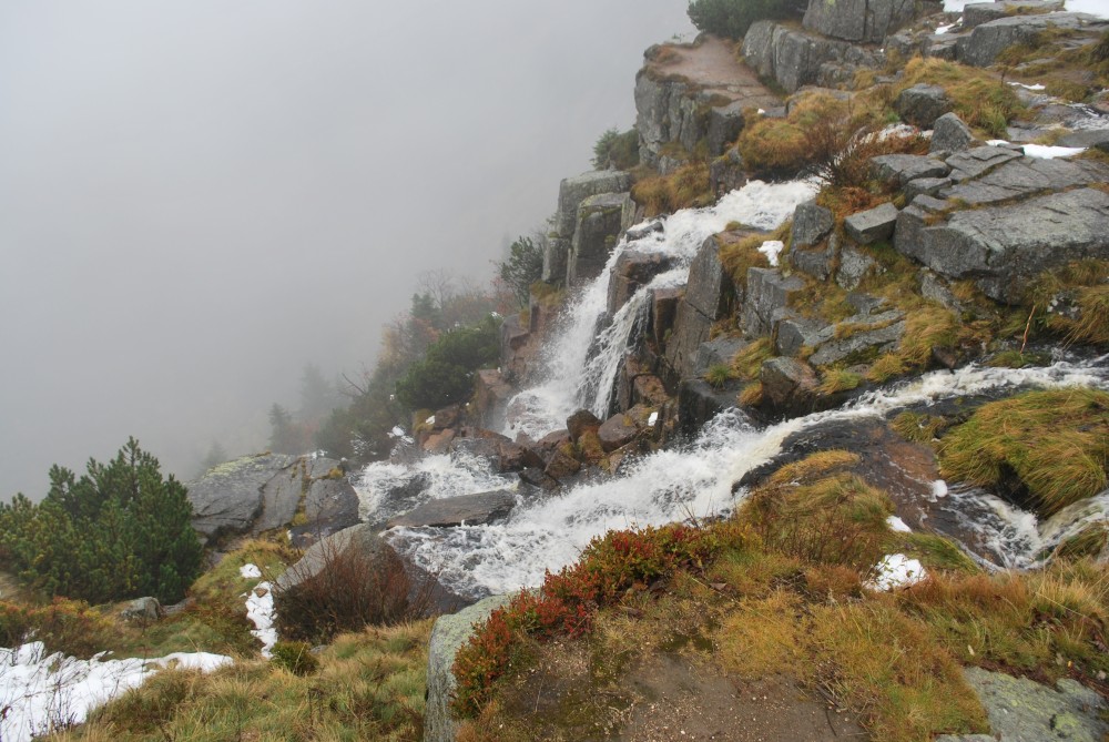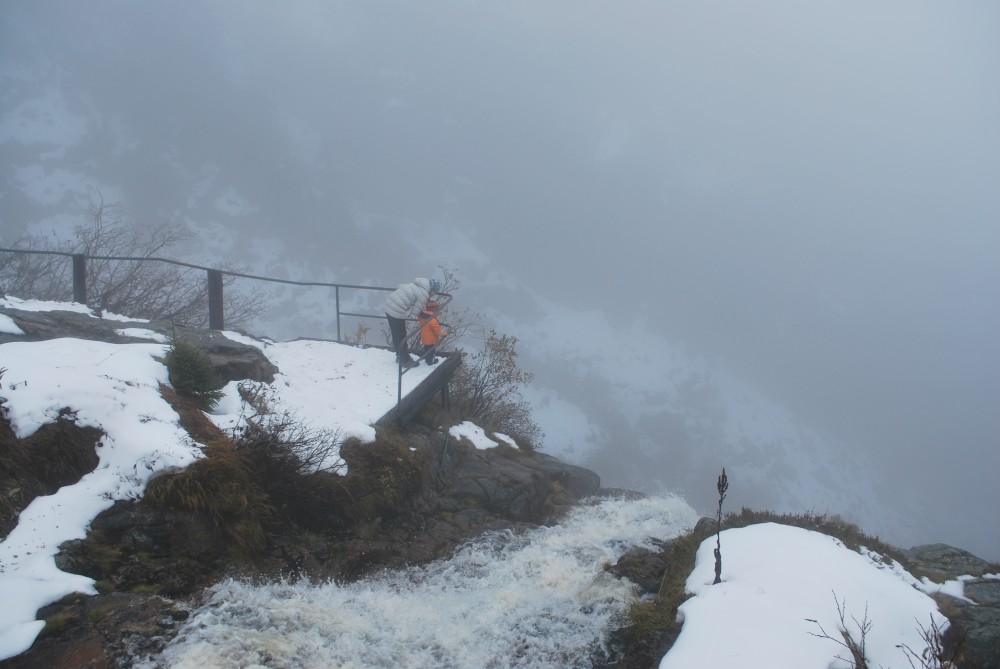 V pátek máme firemní poradu na Labské boudě. Je to akce i s rodinkama. Vyrážíme už ve čtvrtek. Ráno vyrážíme z Tábora do Míseček. Dáváme oběd v chatě Mísečky. Necháváme si bohužel ujet poslední autobus na Zlaté návrší. Ten další, na který jdeme už totiž nepojede kvůli špatným povětrnostním podmínkám a náledí nahoře na návrší. Nezbývá než vyrazit pěšky. Janě se to vůbec nelíbí. Přeci jen je to minimálně 400 m převýšení, 6 km na Zlaté návrší a pak ještě 4 km na Labskou boudu, a to jdeme natěžko.