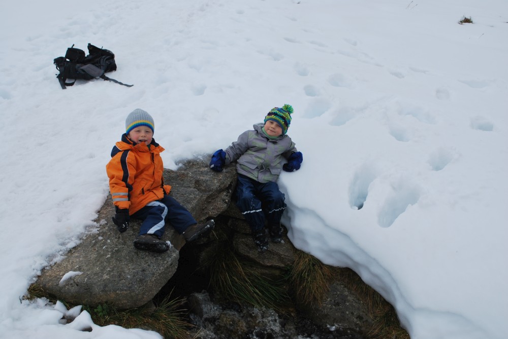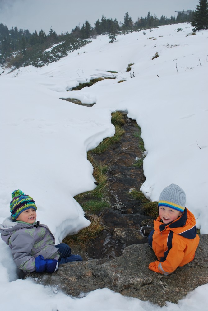 V pátek dopoledne dodělám něco do práce, Jana jde s klukama na procházku. Po obědě začíná porada, Jana jde s klukama zase ven. Večer uspáváme kluky a začíná večírek. Jana jde spát rozumně, já to dost protáhl. V sobotu se mi teda moc vstávat nechce. Po snídani jdeme s klukama na Labský vodopád. Dáváme na Labské oběd a pak vyrážíme na prameny Labe. Sobotní večer je klidný, většina lidí už odjela.