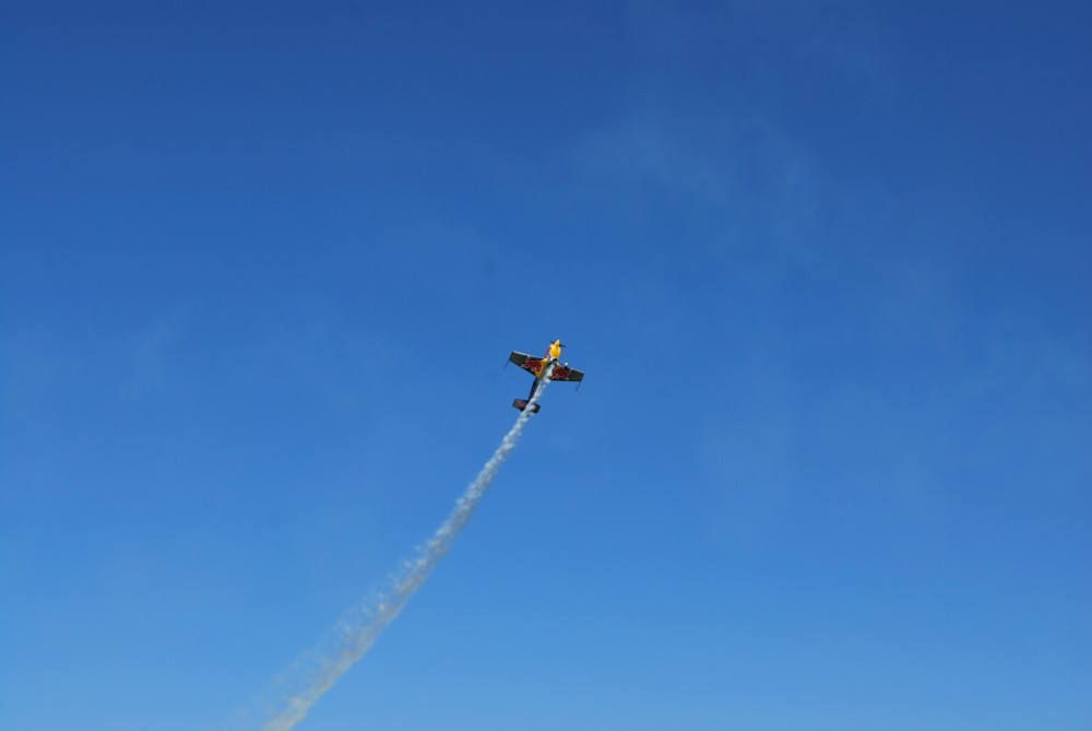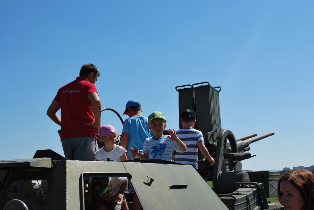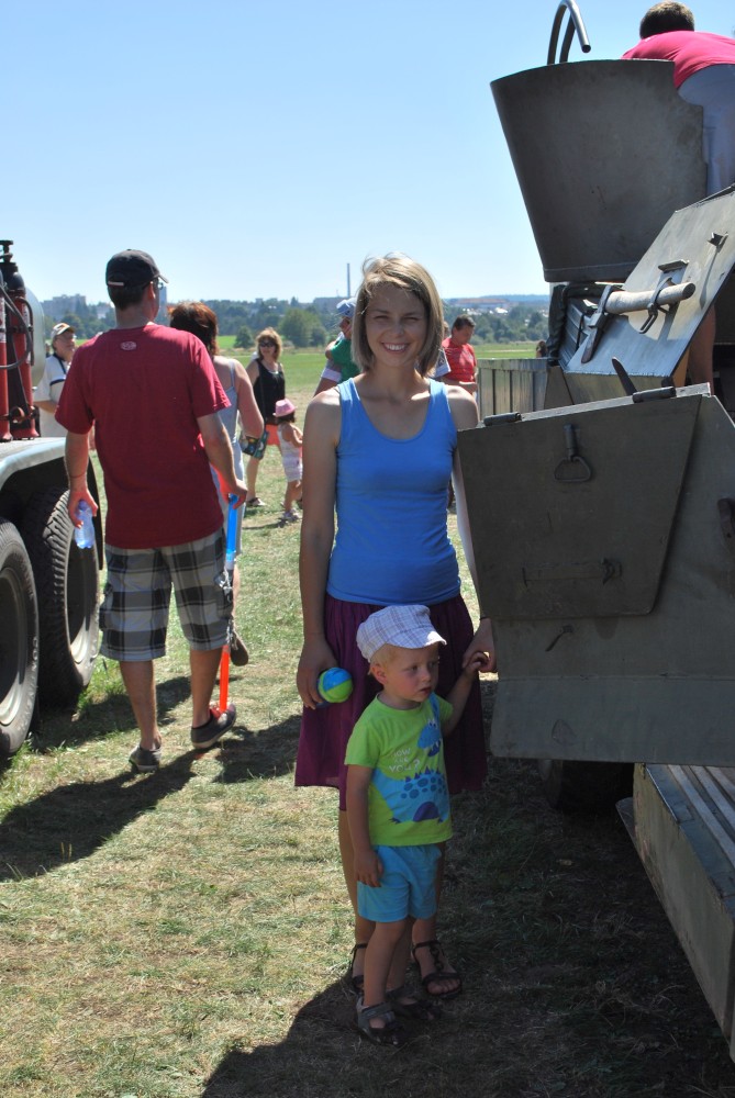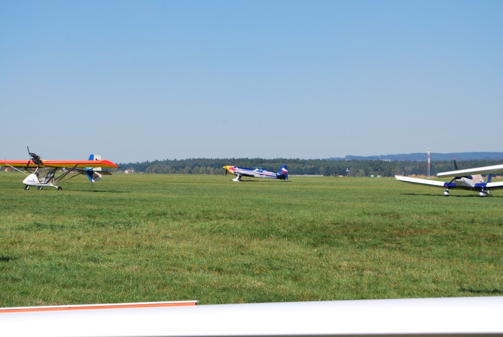 Jdeme na Čápák na letecký den. Jde i Radek s dětma. Jsou tam vystavená letadla i auta, přelétají gripeny a zlatým hřebem dne je exhibice Martina Šonky.