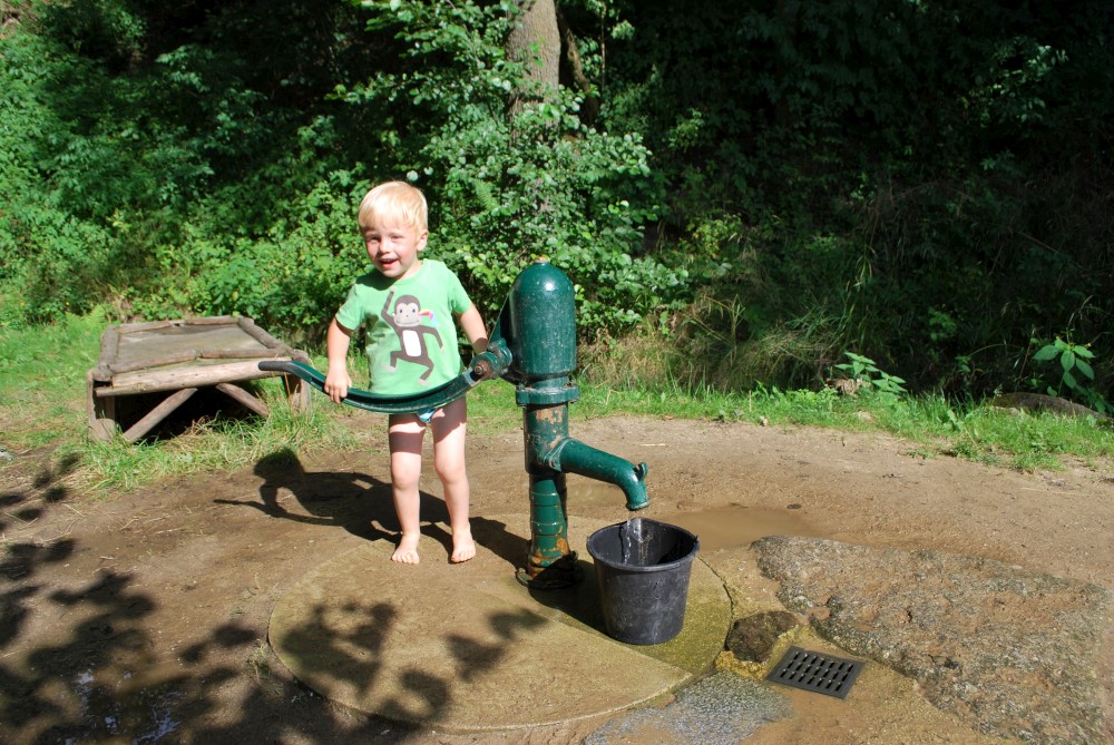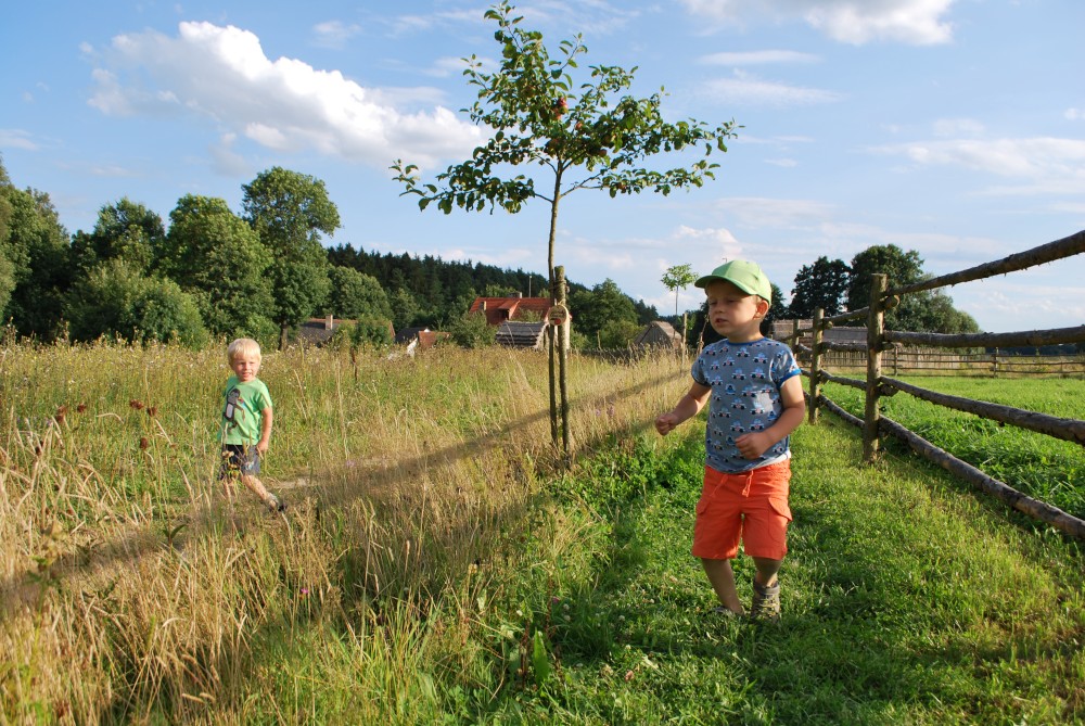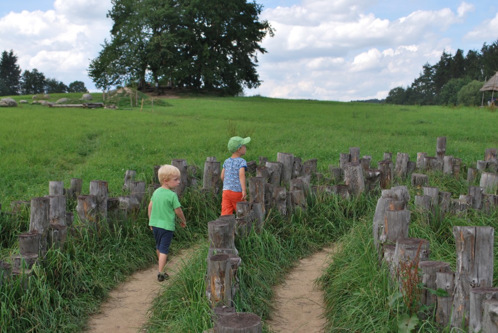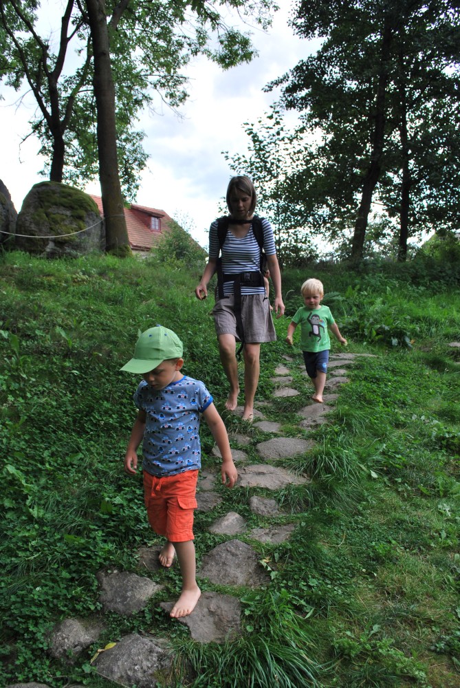 Dnes po obědě se jedeme podívat do Zeměráje v Kovářově. Kluci plní různé úkoly, hrají si třeba na archeology. Vyzkoušeli jsme si také stezku naboso. Kluci si to moc užívali.
