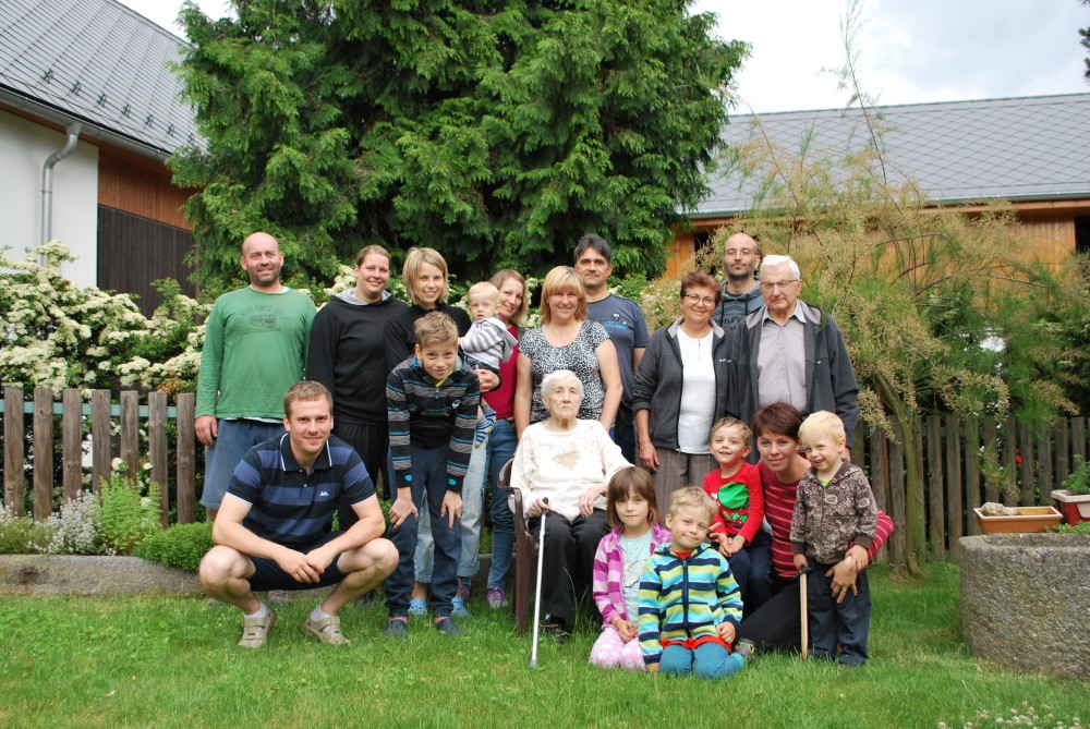 Dnes slavíme Martínka první narozeniny, Víti a Jany svátek. Po delší době se scházíme celá rodinka. Připojuje se i prababička Vlasta. Slavíme na Horkách pod kolnou.