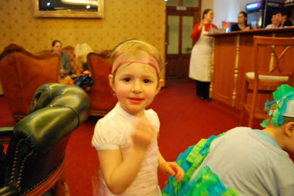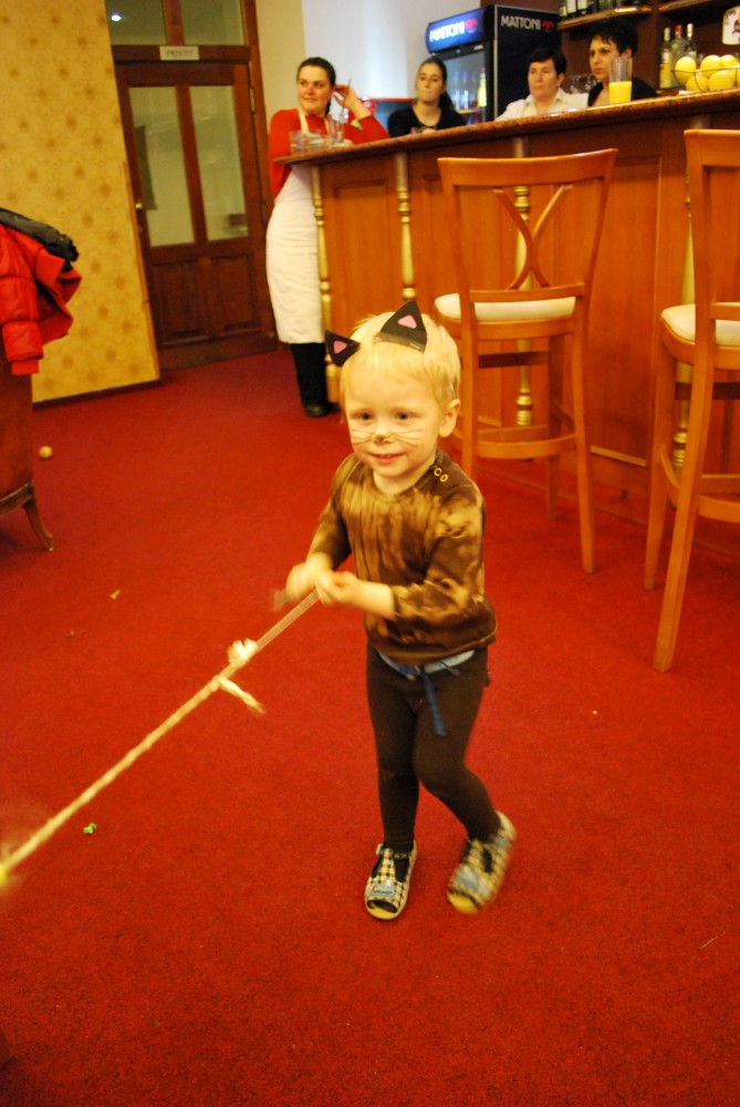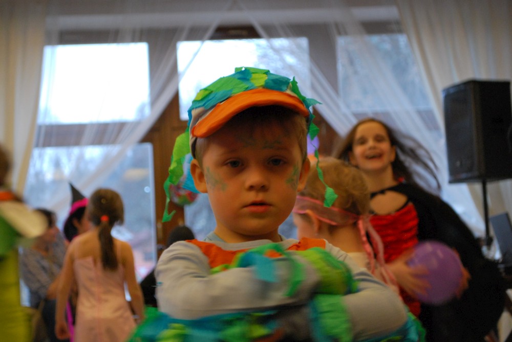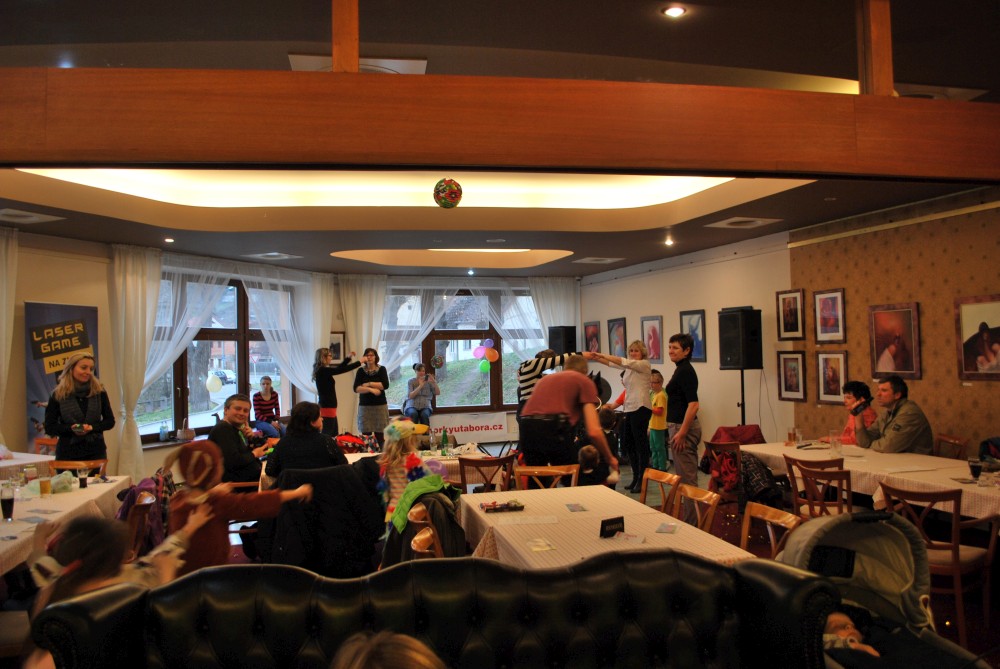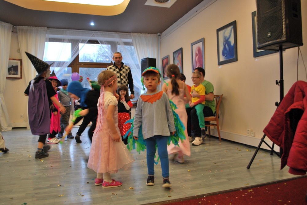 Odpoledne jdeme na horecký maškarní do lázní v Čelkovicích. Víťa jde za lednáčka, Jirka za kocourka. Potkáváme tam Terku s Radkem, Tončou a Fanouškem. Tonča je princezna a Fanouš pirát. Fanoušek si dokonce odnáší jednu z cen za nejlepší masku.