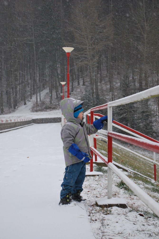 Kluci nás tradičně budí poměrně brzy. Nějak neřeší, že se šlo později spát. Venku začíná sněžit. Promýšlíme, kam vyrazíme na výlet. Nechce se nám nikam autem, takže vyrážíme k Myjavské nádrži. Tam je prý restaurace, tam bychom se občerstvili, ohřáli se a pokračovali k místnímu lyžařskému středisku a zpět po červené. Ivka s Inžou mají podobný plán, jen chtějí dát okruh obráceně. Ostatní se popováží kousek autem a jsou pěšky na Javořinu.