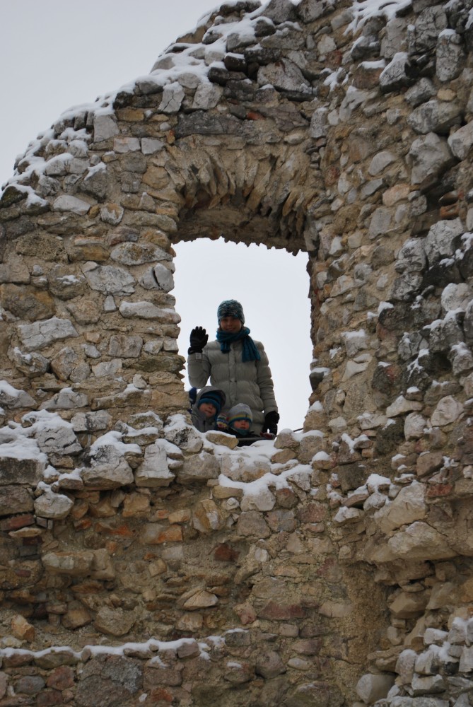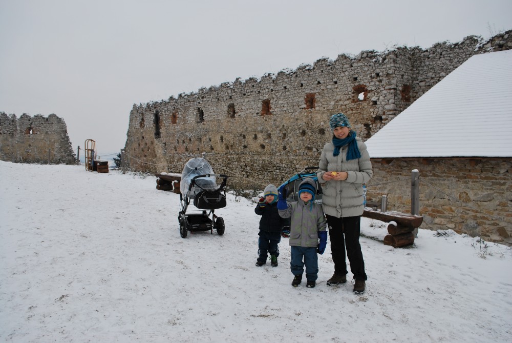 Platíme si prohlídku hradu a celý ho procházíme. Pak už musíme poměrně spěchat na vlak. Kluky dáváme do vozítek. Vlak v půl čtvrté stíháme jen tak tak. Stejným vlakem jedou i ostatní z naší partičky, což nám šetří spoustu starostí s nástupem do vlaku a výstupem z něj. V Poriadie se nakládáme do auta a jedeme zpět na domeček. Dáváme společnou večeři - tentokrát polévku kapustnici. Je výborná, lepší než u oběda v restauraci. Pak zase uspávání, večer se společenskými hrami.
