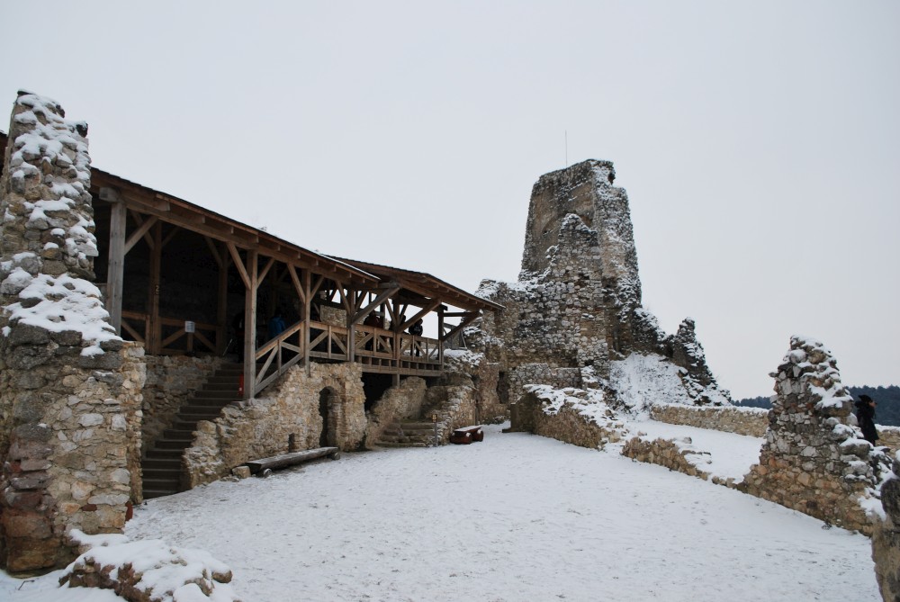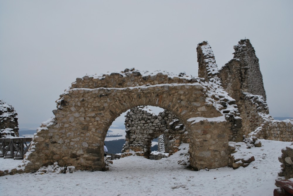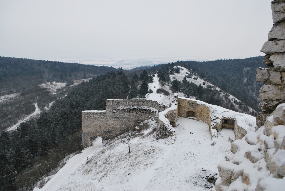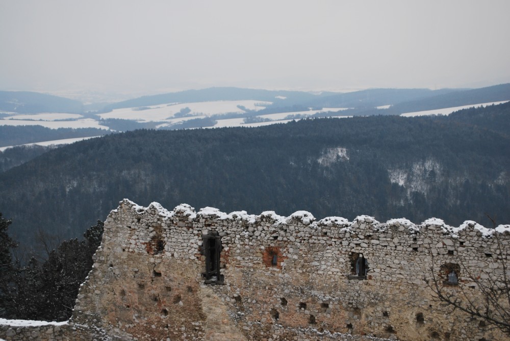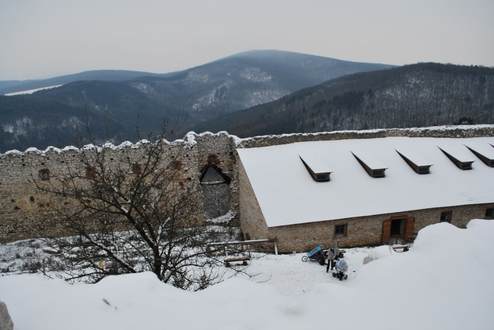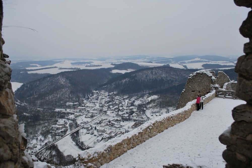 Cesta nahoru jde celkem dobře. Kluci se chvílemi vezou, chvílemi jdou po svých. Víťovi s Jirkou se líbí tandemová chůze na úvazu (jsou svázáni lanem a dělají mašinku). Cestou na hrad potkáváme ostatní. Jeli vlakem do Višňové a po návštěvě hradu pokračují dolů do Čachtic. Dáváme jim tip na občerstvení a pokračujeme na hrad.